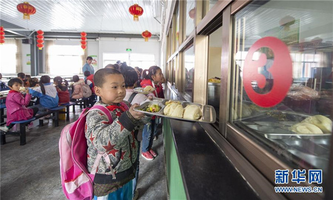 自實(shí)施農(nóng)村義務(wù)教育學(xué)生營養(yǎng)改善計劃以來,寧夏回族自治區(qū)積極為農(nóng)村學(xué)子提供免費(fèi)的營養(yǎng)餐。從去年開始,寧夏固原市西吉縣的免費(fèi)營養(yǎng)午餐迎來了升級換代,從原來的一道燴菜變成了如今的兩素一葷,餐具由餐桶換成了餐盤。在保證營養(yǎng)膳食搭配的同時,增加了學(xué)生的自主選擇性。從“吃得飽”到“吃得好”,升級換代的營養(yǎng)餐得到了廣大學(xué)生認(rèn)可。 新華社發(fā)(楊植森 攝)