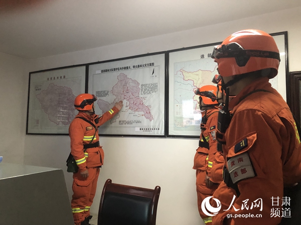甘肅省森林消防總隊先遣分隊已到達震中并展開勘察、救援。(甘肅省森林消防總隊供圖)