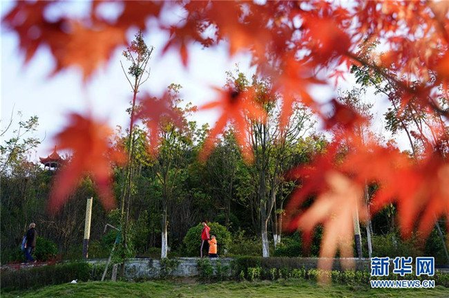 10月30日,游客在陜西嵐皋巴山珍稀植物園內(nèi)游玩。