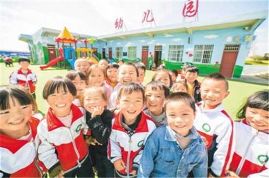 貴州省畢節(jié)市大方縣貓場鎮(zhèn)箐口村的箐口小學幼兒園里,孩子們露出開心的笑臉。 羅大富攝(人民圖片)