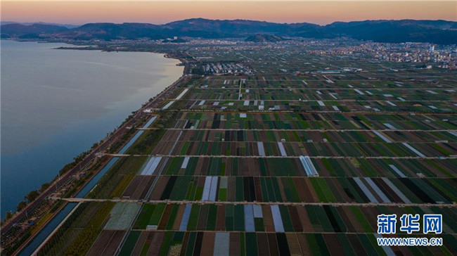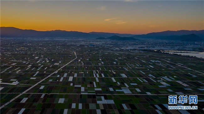 這是云南省玉溪市通??h的田園風(fēng)光(11月23日無(wú)人機(jī)拍攝)。初冬時(shí)節(jié),云南省玉溪市通海縣風(fēng)景秀麗,山巒、湖水與農(nóng)田組成了一幅美麗的田園詩(shī)畫卷。新華社記者胡超攝