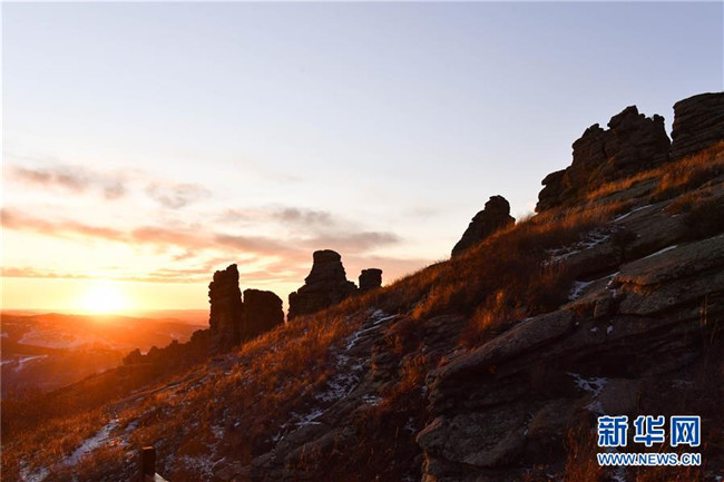 克什克騰石陣景區(qū)位于內(nèi)蒙古赤峰市克什克騰旗,是國(guó)家5A級(jí)景區(qū)。冬日黃昏,在落日和晚霞的映襯下,克什克騰石陣景區(qū)一派壯美景象。 新華社記者 徐欽 攝