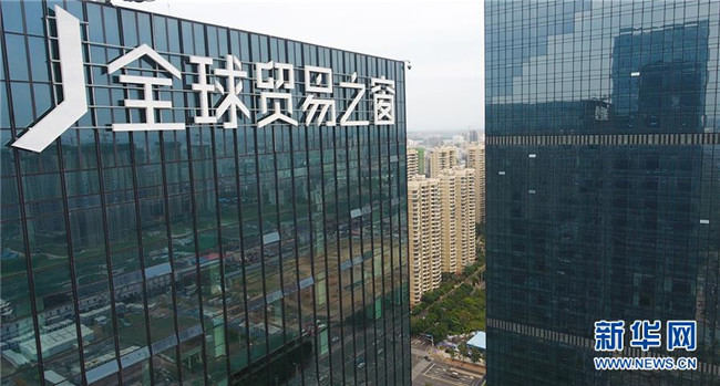 12月5日無(wú)人機(jī)拍攝的位于海口市大英山CBD的海口全球貿(mào)易之窗大廈。 新華社記者 楊冠宇 攝