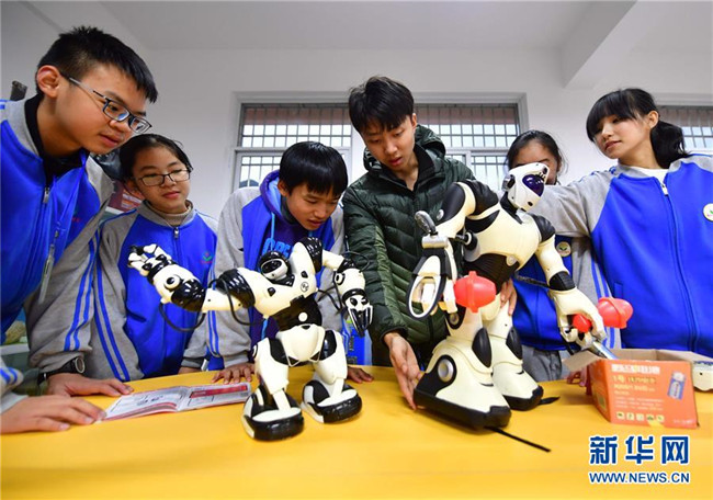12月5日,在廣西融水苗族自治縣民族中學(xué),郭浩坤(右三)在給學(xué)生們上課。郭浩坤是西北工業(yè)大學(xué)的在讀碩士研究生,今年9月來到融水苗族自治縣民族中學(xué),擔(dān)任物理老師。 新華社記者 黃孝邦 攝