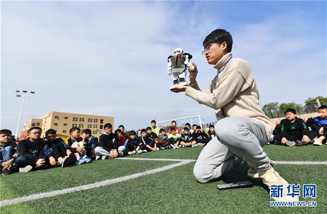 12月5日,在廣西融水苗族自治縣思源實驗學(xué)校,譚博天在戶外給學(xué)生們上科技課。譚博天是西北工業(yè)大學(xué)的在讀碩士研究生,今年9月來到融水苗族自治縣思源實驗學(xué)校,擔(dān)任班主任。 新華社記者 黃孝邦 攝