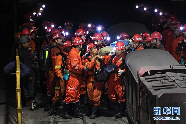 井下水位逐漸下降。18日3時,一名礦工涉水走出被困巷道,與井下救援隊伍會合,并報告剩余12人確認安全。5時55分,首批2名被困人員從地下300多米深處被救出洞口。