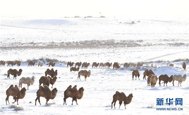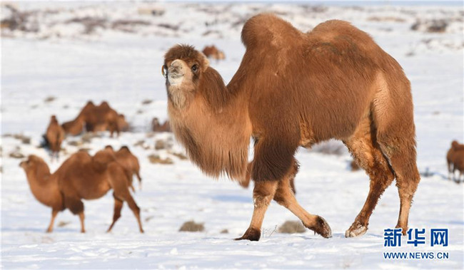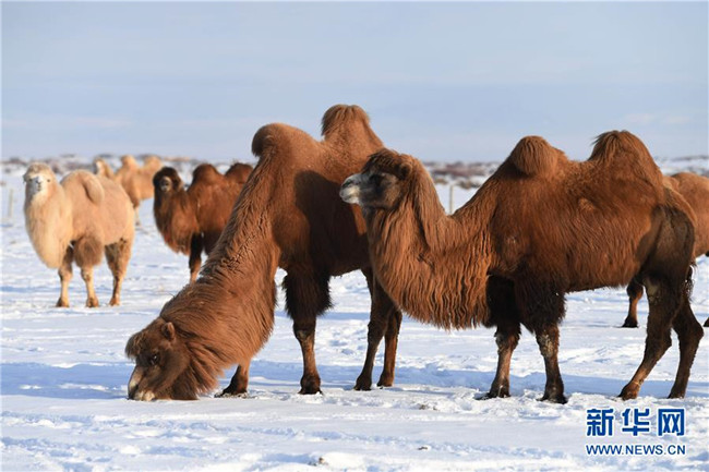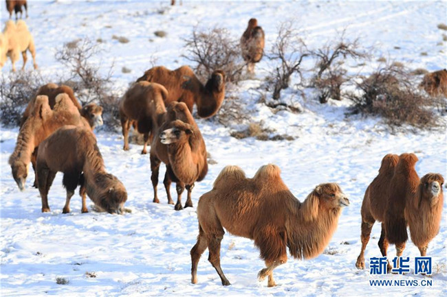 12月30日,一群駱駝在新疆吉木乃縣“萬駝園”覓食。新華社記者 沙達(dá)提 攝