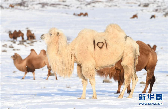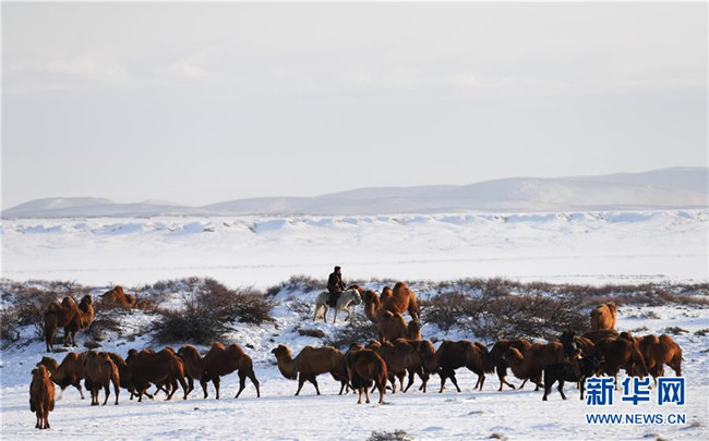 12月30日,牧民在新疆吉木乃縣“萬駝園”放駱駝。新華社記者 沙達(dá)提 攝