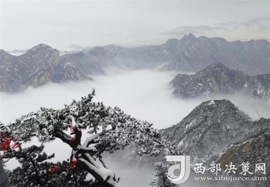 白雪與蒼翠的華山奇松、靈動的云海交相輝映,