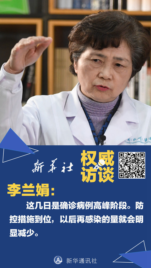 李蘭娟:之前為潛伏期的病人開始發(fā)病。早期武漢流到全國各地的病人以及留在武漢的病人都到了發(fā)病期,這是高峰來臨的一個階段,一點也不奇怪。現(xiàn)在,發(fā)病的人我們隔離了,與他們有密切接觸的人員也調(diào)查出來、隔離起來,以后再感染的數(shù)量會明顯減少。武漢“封城”是非常英明的決策。正好趕上春節(jié)人口大流動,只有嚴(yán)格地把武漢控制起來,其他的地方才會減少發(fā)病率。