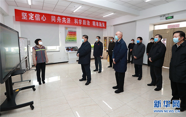 2月10日,中共中央總書(shū)記、國(guó)家主席、中央軍委主席習(xí)近平在北京調(diào)研指導(dǎo)新冠肺炎疫情防控工作。這是習(xí)近平在朝陽(yáng)區(qū)安貞街道安華里社區(qū),了解基層一線疫情聯(lián)防聯(lián)控情況。 新華社記者 龐興雷 攝