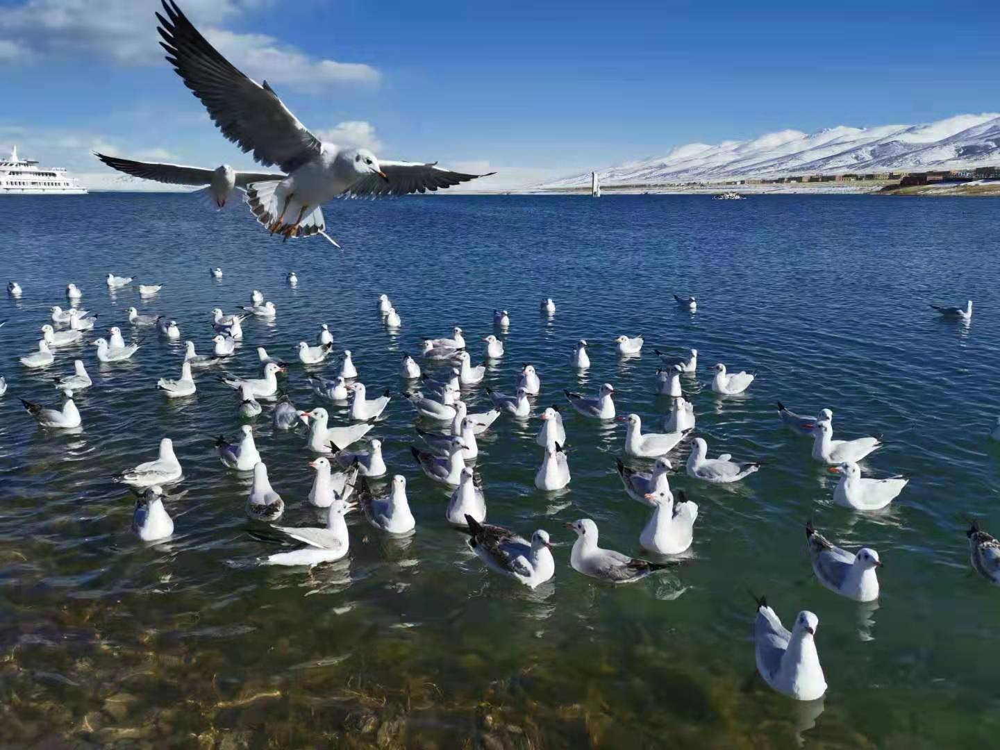 青海湖是中亞—印度、東亞—澳大利亞國際水鳥遷徙的重要節(jié)點和青藏高原水鳥重要的越冬地,水鳥種類95種,占青藏高原水鳥種類的70%,約占全國水鳥種類的33%,每年在青海湖繁殖的斑頭雁、棕頭鷗、漁鷗、普通鸕鶿繁殖種群達到全球繁殖種群的30%,每年春、秋兩季,途經(jīng)青海湖遷徙停留的水鳥達10萬余只,其中有11—14種水鳥的種群數(shù)量達到或超過全球分布種群數(shù)量的1%,每年冬季在青海湖越冬水鳥1萬余只,其中國家Ⅱ級保護動物大天鵝約1500只。國家Ⅰ級重點保護動物黑頸鶴在青海湖濕地草甸地帶棲息繁殖。