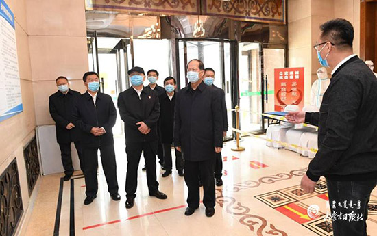 4月13日,自治區(qū)黨委書記、人大常委會(huì)主任石泰峰來到呼倫貝爾市滿洲里,調(diào)研入境人員隔離點(diǎn)防控工作情況。 內(nèi)蒙古日報(bào)社融媒體記者 袁永紅 攝