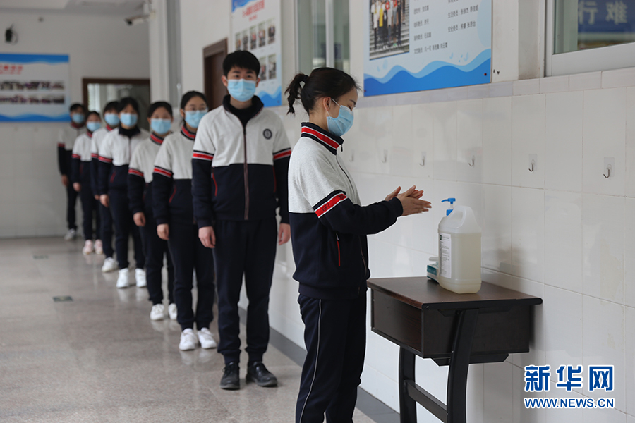 在重慶市第八中學,口罩、洗手液、體溫槍(計)、消毒劑等防控物資保障到位。工作人員對教室、宿舍、食堂、設施設備、道路通道等學校各區(qū)域進行了充分地消殺。新華網(wǎng)發(fā)