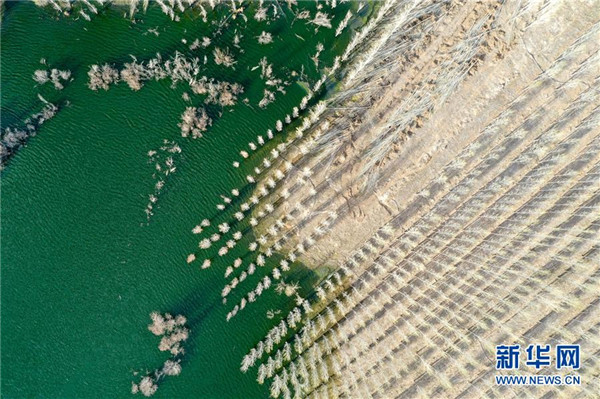近年來,新疆阿勒泰市利用經(jīng)污水處理廠處理達(dá)標(biāo)后的中水,灌溉建在戈壁灘上的苗圃基地,形成良性循環(huán),助力綠化工程,改善生態(tài)環(huán)境。從2017年至今,阿勒泰市中水回用環(huán)境治理示范園已為當(dāng)?shù)鼐G化工程提供40萬株樹苗,實(shí)現(xiàn)5000畝荒山綠化。新華社記者丁磊攝