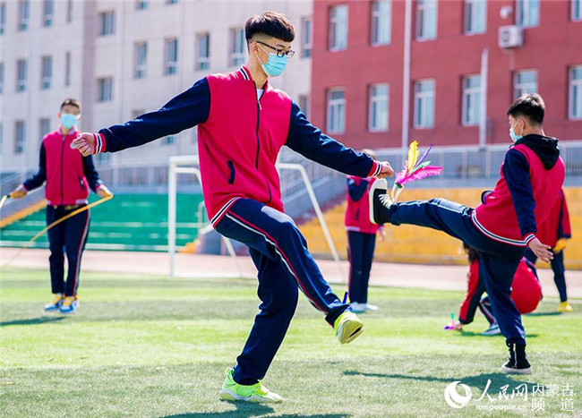 內蒙古呼和浩特市第十二中學學生在課間進行體育鍛煉。