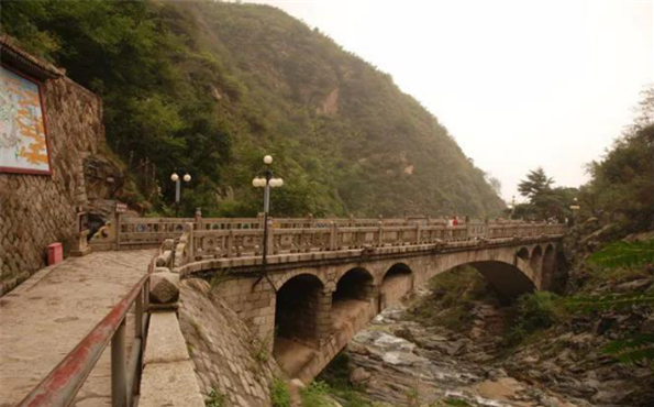 原潭側巖石上建有廟宇叫五龍宮,宮內供有五位龍君,文化革命前殘垣還在,“文革”后徹底毀廢。由于山洪原因,潭逐漸被碎石填塞,今已不復存在。唯潭上的五龍橋及橋頭上的大型五龍彩色壁畫依然向游人訴說著五龍?zhí)睹利惖膫髡f。橋欄鐫刻的“五龍橋”三字是當時任中共中央書記處書記的胡喬木同志所書。