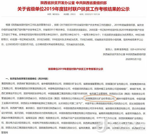陜北礦業(yè)檸條塔公司被評為陜西省駐村聯(lián)戶扶貧工作優(yōu)秀企業(yè)
