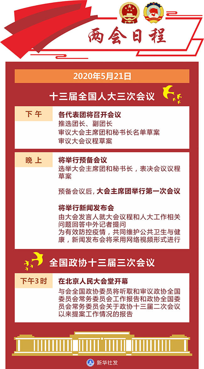 原標題:5月21日:全國政協(xié)十三屆三次會議下午3時開幕 十三屆全國人大三次會議舉行預備會議
