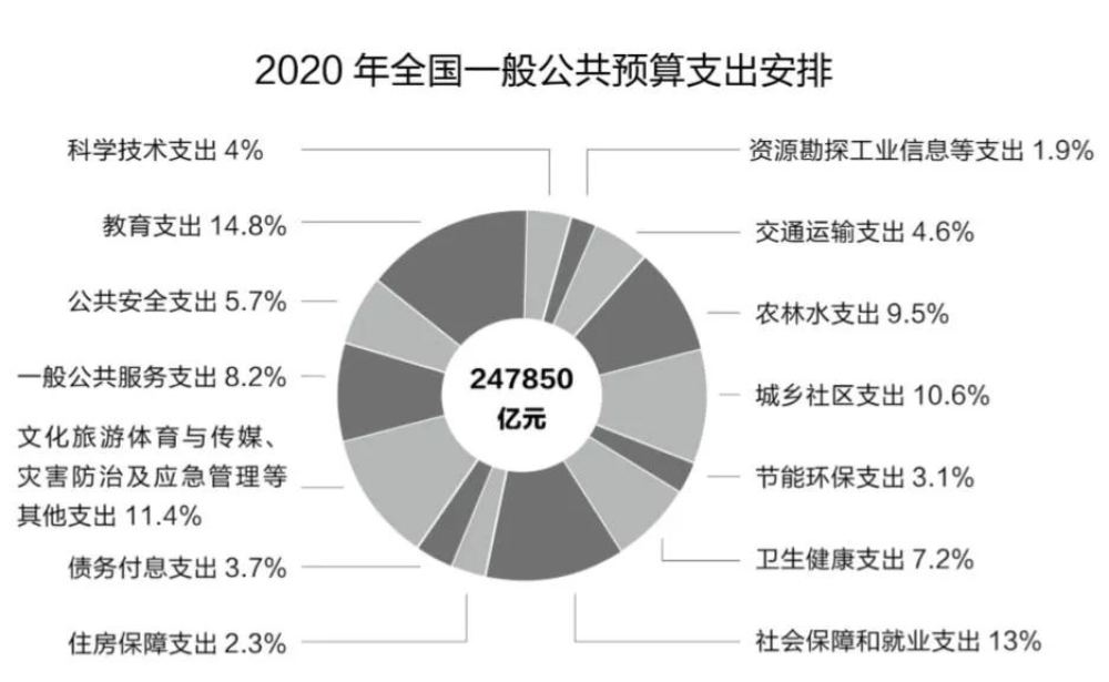 在超過24萬億元的全國一般公共預算支出中,民生等相關支出占了大頭:其中,教育支出占14.8%、社會保障和就業(yè)支出13%、文化旅游體育與傳媒、災害防治及應急管理等其他支出11.4%、城鄉(xiāng)社區(qū)支出10.6%、農(nóng)林水支出9.5%、一般公共服務支出8.2%、公共安全支出5.7%……