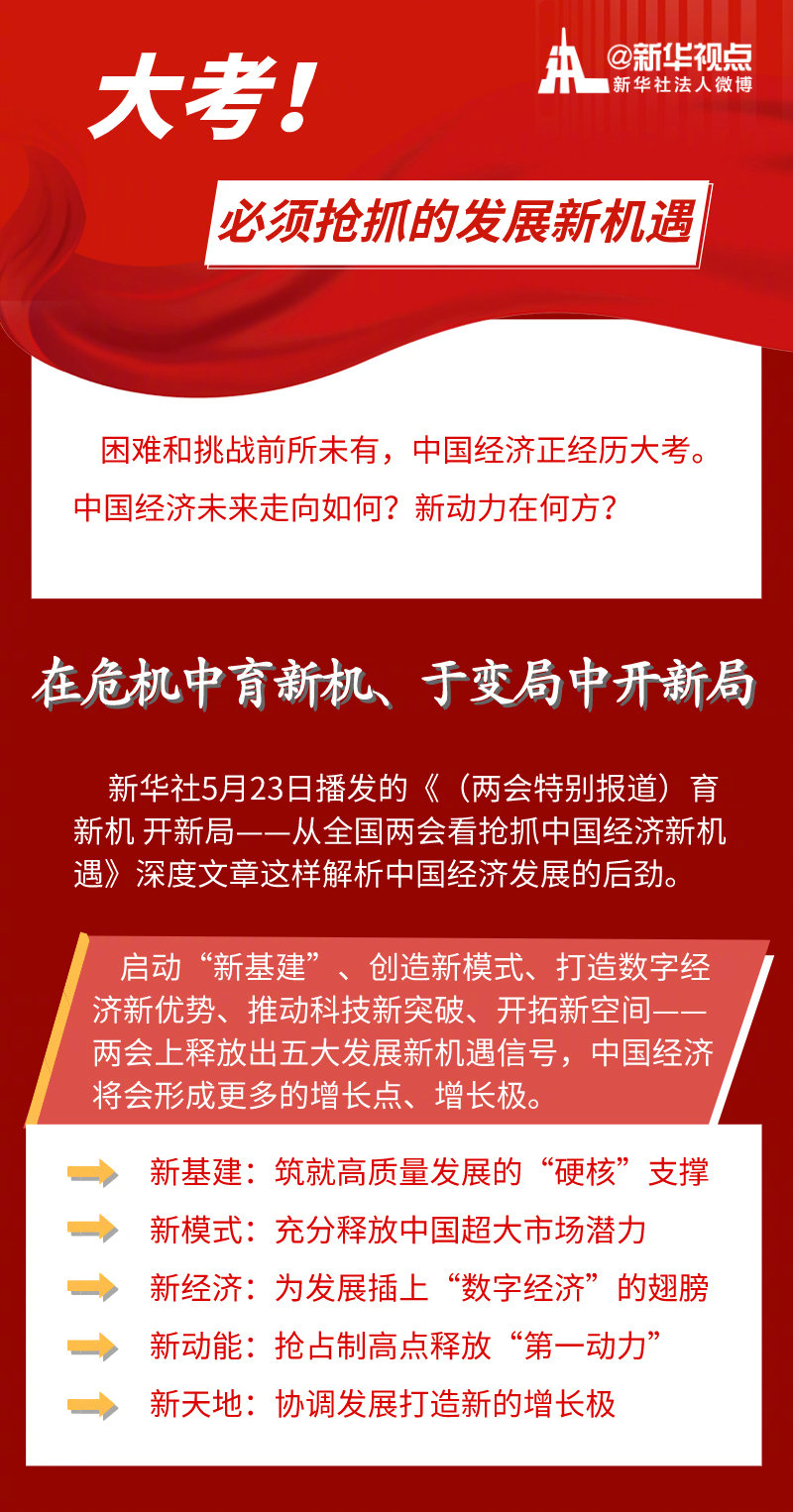 啟動“新基建”、創(chuàng)造新模式、打造數(shù)字經(jīng)濟新優(yōu)勢、推動科技新突破、開拓新空間——不斷涌現(xiàn)的新機遇、新趨勢,正匯聚起不竭新動能,推動中國經(jīng)濟乘風(fēng)破浪、行穩(wěn)致遠。