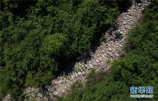 俯瞰大相嶺茶馬古道中修復(fù)完成的一段(無人機(jī)照片,5月25日攝)。新華社記者江宏景攝