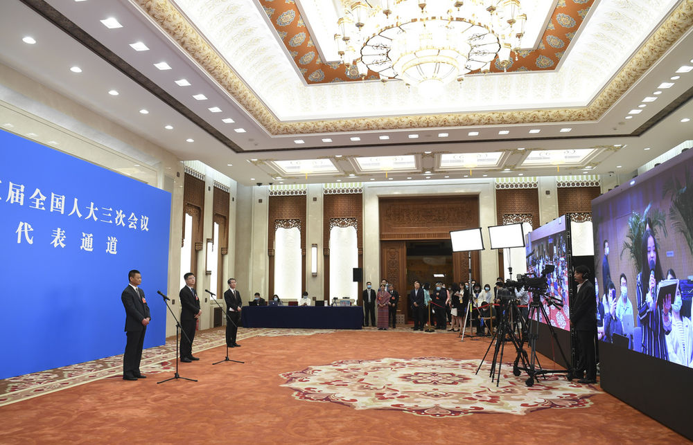 這是全國人大代表通過網(wǎng)絡視頻方式接受采訪。(新華社記者金良快 攝)