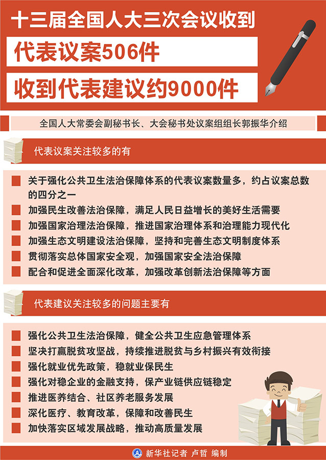 十三屆全國(guó)人大三次會(huì)議收到代表議案506件 收到代表建議約9000件