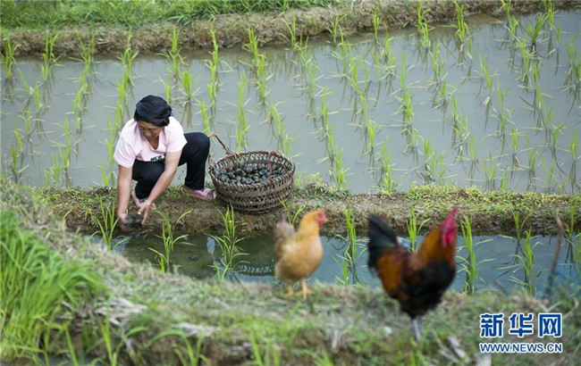 在田螺養(yǎng)殖過程中,采取“公司+合作社+農(nóng)戶”的模式,政府統(tǒng)一向龍頭公司采購種螺交給合作社,合作社根據(jù)貧困戶水田規(guī)模和意愿發(fā)放種螺,同時公司技術(shù)人員入村開展養(yǎng)殖技術(shù)培訓(xùn),田螺收獲時再由合作社對接種螺公司統(tǒng)一上門按保底價回收,解除了貧困戶養(yǎng)殖和銷售的后顧之憂,進(jìn)一步拓寬山區(qū)群眾脫貧增收渠道。 新華社記者 楊文斌 攝