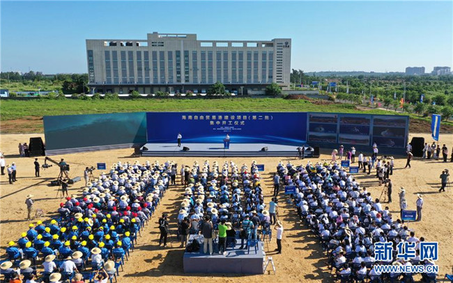 這是7月13日拍攝的海南自由貿(mào)易港建設(shè)項目(第二批)集中開工儀式現(xiàn)場(無人機照片)。 新華社記者 郭程 攝