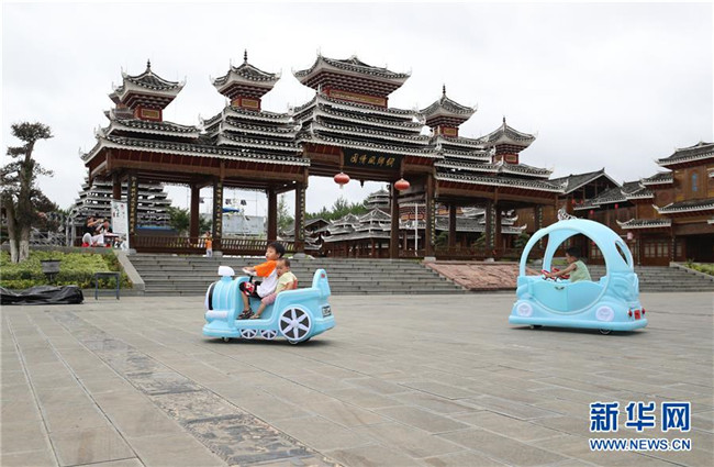 7月19日,在貴州省銅仁市玉屏侗族自治縣田坪鎮(zhèn)侗鄉(xiāng)風情園內,易地扶貧搬遷小朋友在玩耍。新華社發(fā)(胡攀學 攝)