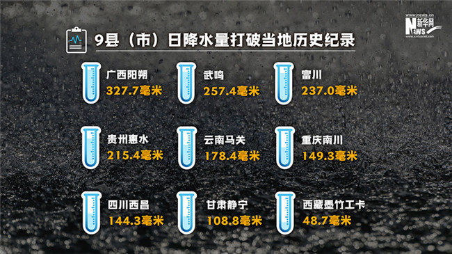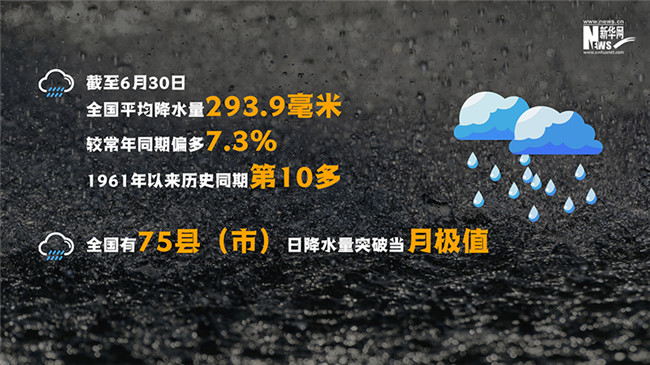 入汛以來,全國有75縣(市)日降水量突破當(dāng)月極值,有9縣(市)日降水量打破當(dāng)?shù)貧v史紀(jì)錄。