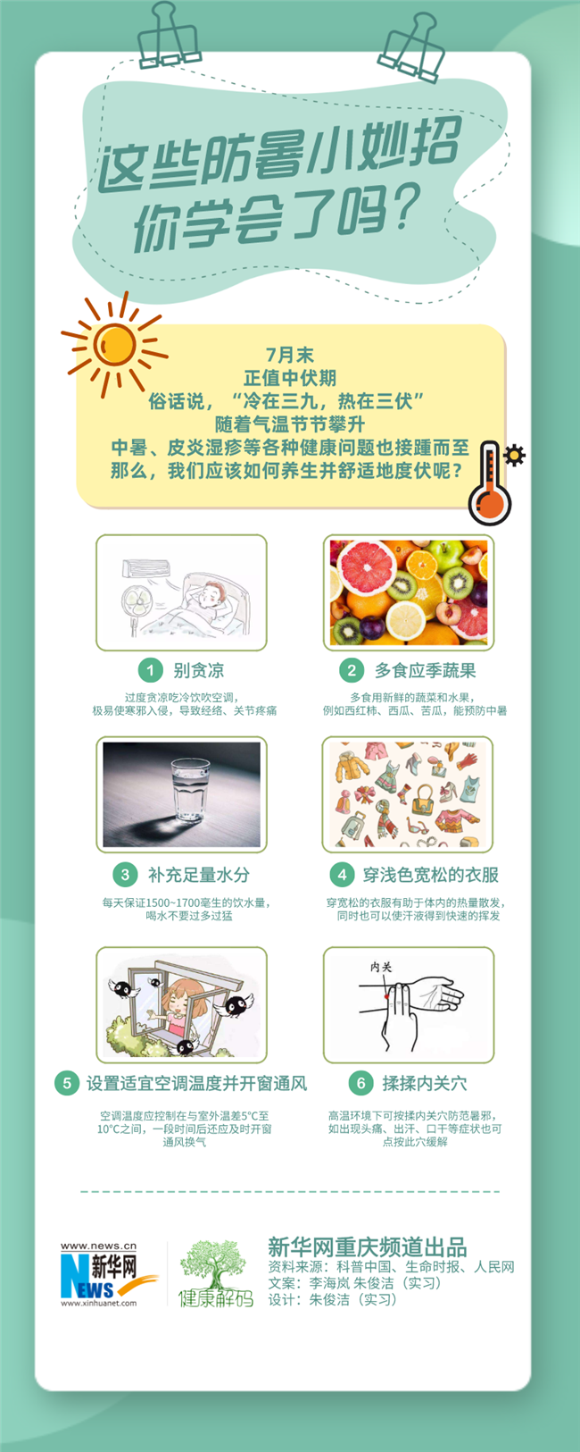 原標題:【健康解碼】這些防暑小妙招,你學(xué)會了嗎?