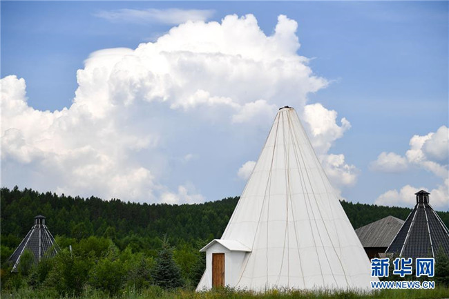 這是7月14日拍攝的敖魯古雅鄂溫克族鄉(xiāng)里現(xiàn)代風(fēng)格的“撮羅子”。 新華社記者 貝赫 攝