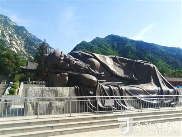 在華山腳下的玉泉院廣場(chǎng)上,橫躺著一尊大型雕像,雕像長(zhǎng)12.8米,高5.6米,雕刻的是一位寬面長(zhǎng)髯、側(cè)身而臥的老者——陳摶!陳摶(tuán)(871年-989年),安徽亳州真源縣人,五代宋初著名道教學(xué)者,字圖南,號(hào)扶搖子,賜號(hào)希夷先生(出自《道德經(jīng)》),后世尊稱為陳摶老祖、希夷祖師等。由于疫情關(guān)系,玉泉院暫時(shí)閉院,但廣場(chǎng)上的這尊雕像卻仍吸引了很多游客前去觀賞拍照留念。