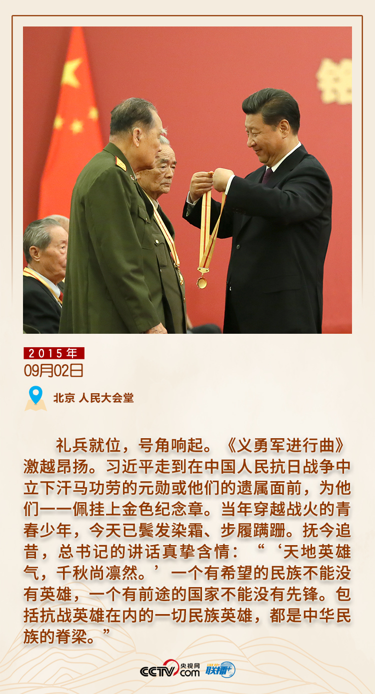 黨的十八大以來,國(guó)家通過立法確定了中國(guó)人民抗日戰(zhàn)爭(zhēng)勝利紀(jì)念日、烈士紀(jì)念日、南京大屠殺死難者國(guó)家公祭日。天安門廣場(chǎng)、人民大會(huì)堂、烈士陵園、抗日戰(zhàn)爭(zhēng)紀(jì)念館……這些鐫刻歷史記憶的地方,處處留下了習(xí)近平總書記緬懷先烈、崇尚英雄的身影和足跡。
