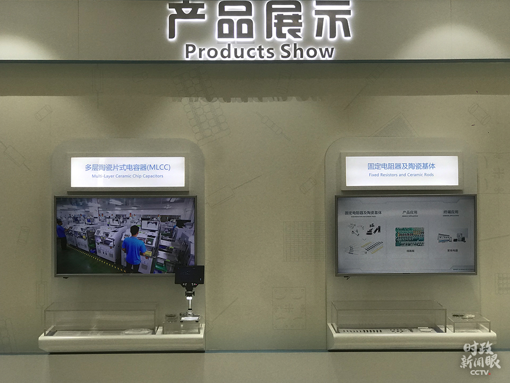 △潮州三環(huán)公司被評(píng)為國(guó)家高新技術(shù)企業(yè),連續(xù)多年名列中國(guó)電子元件百?gòu)?qiáng)前十名。(總臺(tái)央視記者黃東旭、趙晨拍攝)