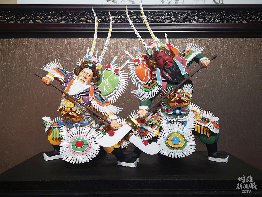 △這是潮州嵌瓷《關(guān)公戰(zhàn)黃忠》。(總臺(tái)央視記者張曉鵬拍攝)
