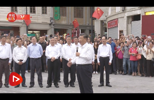 隨后,習(xí)近平步行到開(kāi)埠區(qū)街區(qū),察看人文歷史風(fēng)貌,同市民群眾親切交流。