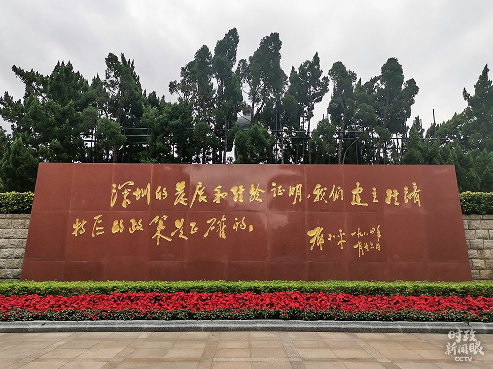 △鄧小平銅像北側(cè)是一塊長達13米、高4.35米的花崗巖石墻,石墻北面鐫刻著鄧小平同志1984年視察深圳時的題詞:“深圳的發(fā)展和經(jīng)驗證明,我們建立經(jīng)濟特區(qū)的政策是正確的。”(總臺央視記者王冰拍攝)