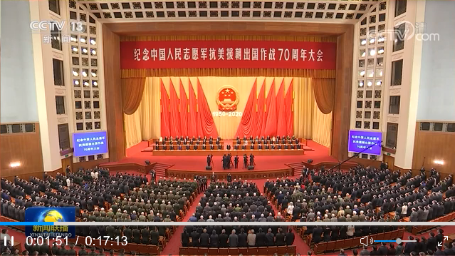 紀念中國人民志愿軍抗美援朝出國作戰(zhàn)70周年大會在京隆重舉行 習近平發(fā)表重要講話