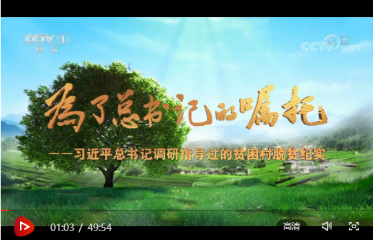 央視網(wǎng)消息:25日起,三集政論專題片《為了總書記的囑托——習(xí)近平總書記調(diào)研指導(dǎo)過的貧困村脫貧紀(jì)實》連續(xù)三天在中央廣播電視總臺央視綜合頻道20:00黃金檔播出。
