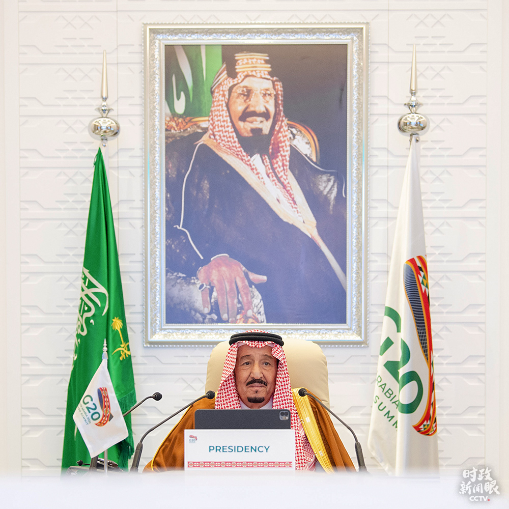 △沙特國王薩勒曼主持G20領(lǐng)導(dǎo)人第15次峰會(huì)第一階段會(huì)議。(來源于G20官方社交媒體)