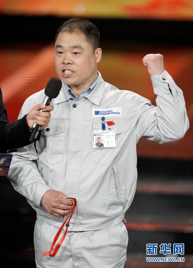 江蘇省無錫微研股份有限公司高級(jí)技師陳亮在“最美職工”發(fā)布儀式上(2019年4月21日攝)。新華社記者才揚(yáng)攝
