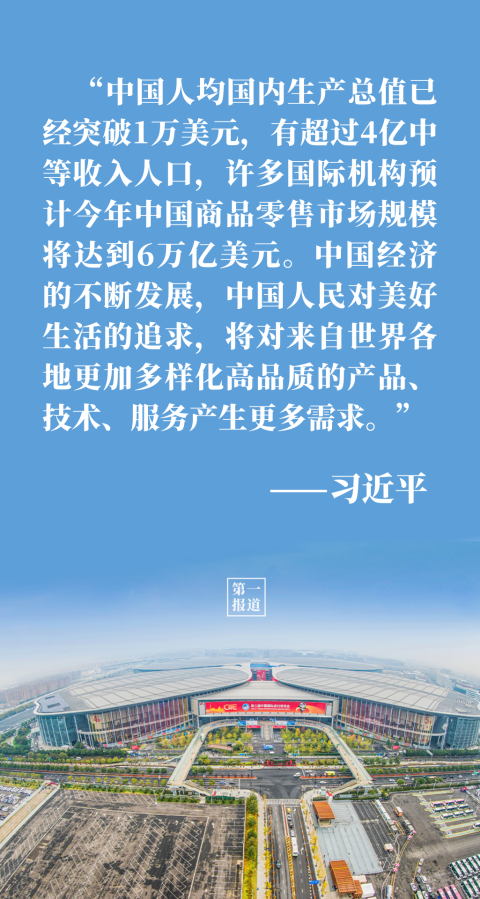 “中國(guó)的發(fā)展離不開(kāi)世界,世界的繁榮也需要中國(guó)。”談到中國(guó)大市場(chǎng)蘊(yùn)藏的大機(jī)遇,習(xí)主席用事實(shí)和數(shù)據(jù)說(shuō)話(huà):