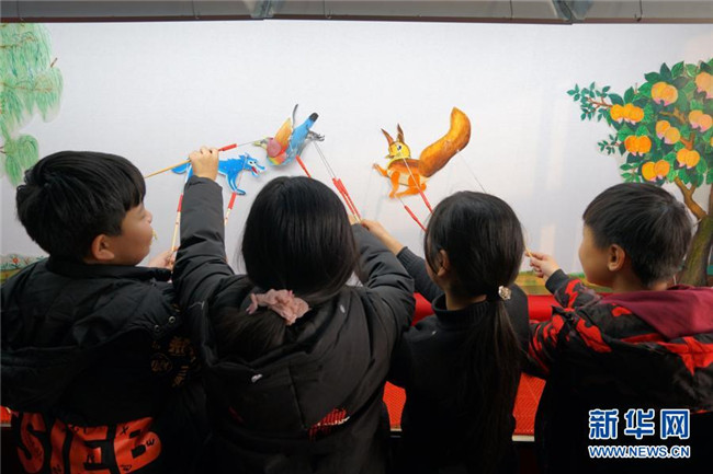 當(dāng)日,在河北省沙河市,當(dāng)?shù)仄び皯蛩嚾俗哌M(jìn)沙河市西油村小學(xué),為學(xué)生們展演皮影藝術(shù)、傳授技藝。今年以來,河北省沙河市積極開展“非遺進(jìn)校園”活動(dòng),組織沙河皮影戲、孔明鎖、孫氏太極拳等非遺項(xiàng)目進(jìn)校園活動(dòng)80多場。
