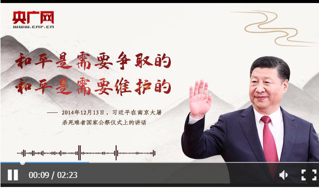 這段話(huà)出自2014年12月13日習(xí)近平在南京大屠殺死難者國(guó)家公祭儀式上的講話(huà)。