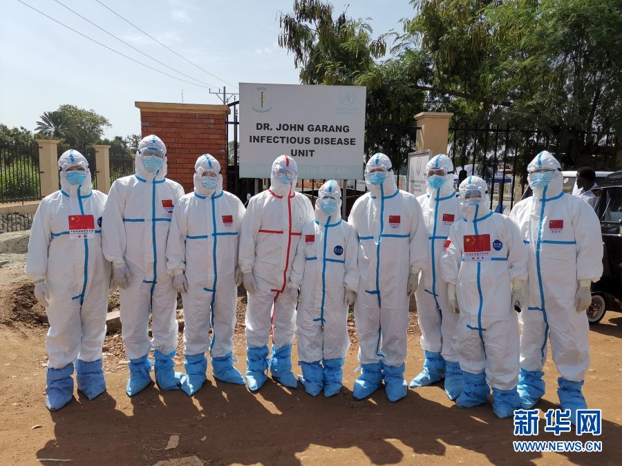 2020年8月21日,中國抗疫醫(yī)療專家組成員在南蘇丹首都朱巴的一處新冠肺炎治療機構(gòu)留影。新華社發(fā)(中國駐南蘇丹大使館供圖)