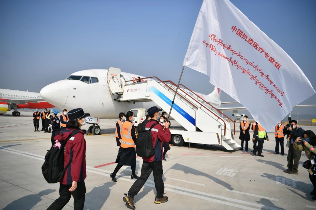 △2020年4月8日,應(yīng)緬甸政府邀請(qǐng),中國(guó)赴緬甸抗疫醫(yī)療專家組從云南昆明出發(fā),赴緬甸協(xié)助當(dāng)?shù)刈龊靡咔榉揽毓ぷ鳌?/p>