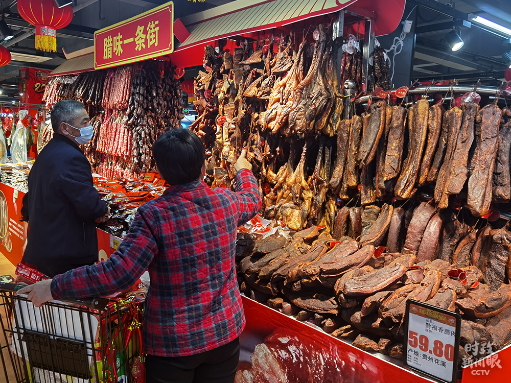 △超市內(nèi)“臘味一條街”(總臺央視記者史偉拍攝)